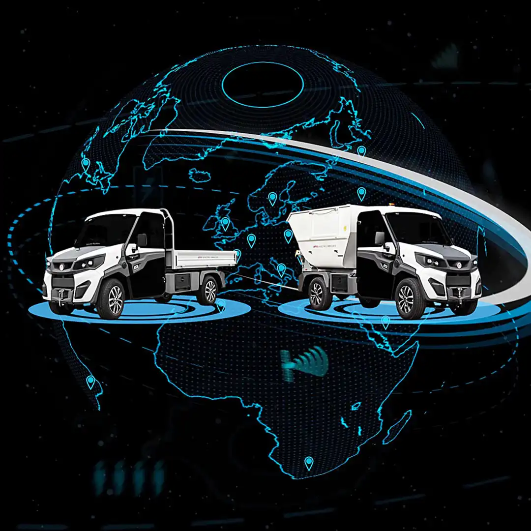 Alkè ATX 440S electric utility vehicles are highly agile, flexible and robust electric work vehicles, compact in size, with a chassis load capacity of 1,550 kg and a towing capacity of up to 4,500 kg (in private areas).